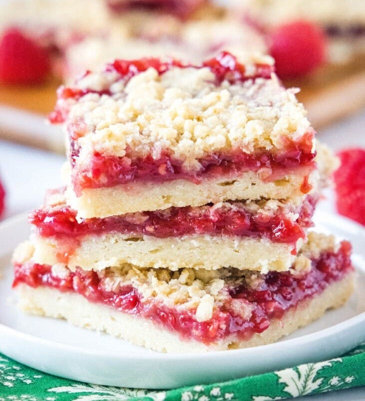 No one loves a raspberry crumble situation more than my dad, so to help his very broken shoulder heal (he already got surgery and is on the path to recovery), I made him these Raspberry Crumble Bars, and they were better than I couldâve ever imagined. My dad lost his mind over them, and thatâs exactly what I was going for. Of course, I kept some for me and Zac, too (Iâm not a psycho) and Zac also couldnât believe how incredible they were. Theyâre easy, too. And served a little warm with a scoop of vanilla? GTFO.